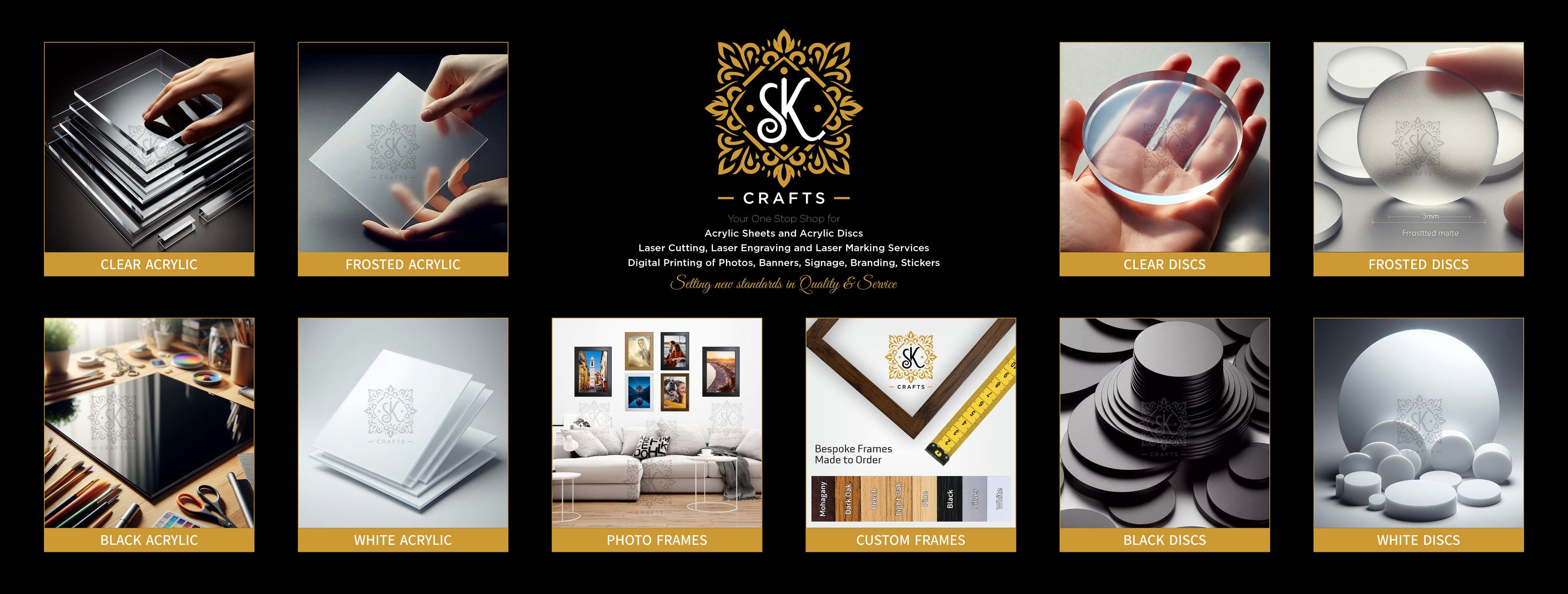Welcome to SK Crafts Limited, your trusted partner for premium acrylic sheet supplies, precision cut to size and polished finish laser cut sheets based in Glasgow, UK. We specialise in high-quality acrylic sheets, acrylic discs, photo frames, and advanced laser cutting, laser engraving, and laser marking services designed to meet both personal and commercial needs.